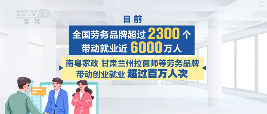 现在,全国劳务品牌超越2300个,带动作业近6000万人。南粤家政、甘肃兰州拉面师等劳务品牌带动创业作业超越百万人次。