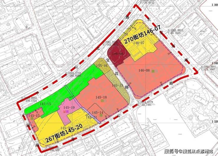 两地块位置相邻,相距不足300米,地处中兴社区核心区域,四至范围为北至中山北路,西至止园路,南至青云路,东至东宝兴路,总面积约13.03公顷。
